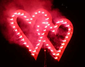 Верхушки свечек соединены специальным огнепроводным шнуром. Все это поджигается, одновременно вспыхивает и горит. С помощью такой системы свечей делают любую картину, надпись, вензель, имя, эмблему или фамильный герб, логотип, Юбилейная дата и т.д.